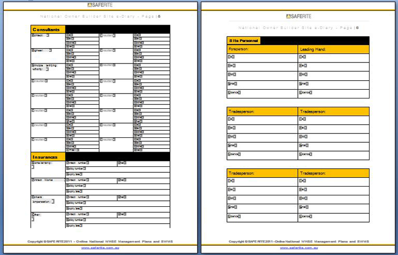 Our 20 PAGE Site e-Diary is yours FREE with your Owner Builder course. This e-diary helps you record your site activities, workers, contact numbers, insurance policies, sub contractors, site deliveries, simple site instructions and more. This site e-diary is indispensible for all potential owner builders who want an easy way to record and protect their interests.